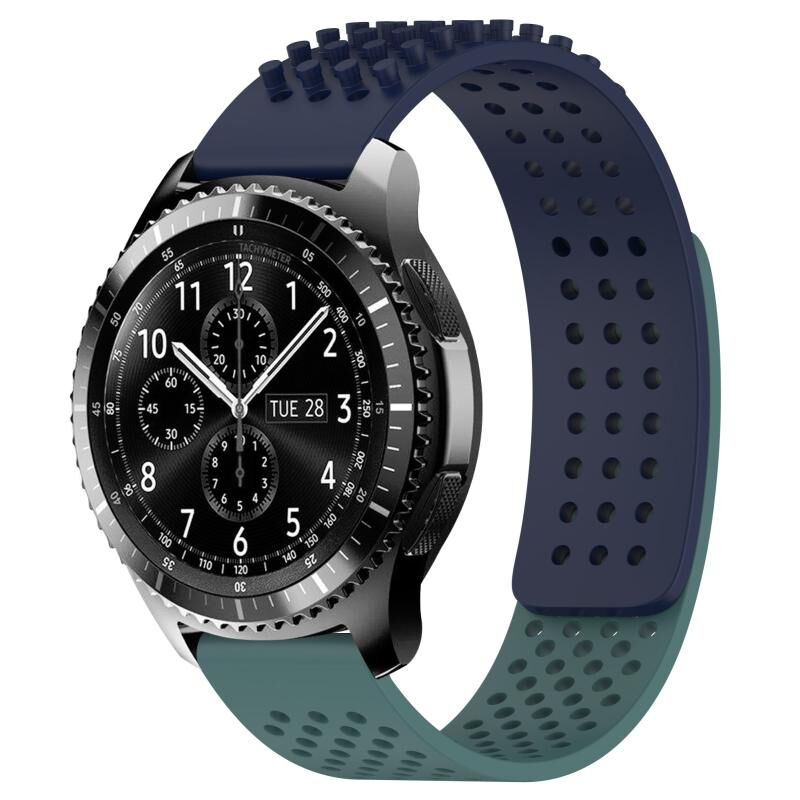 Για το Samsung Gear S3 Frontier 22mm τρύπες αναπνεύσιμο 3D Dots σιλικόνης ρολόι μπάντα (Midnight Blue + Olive Green)