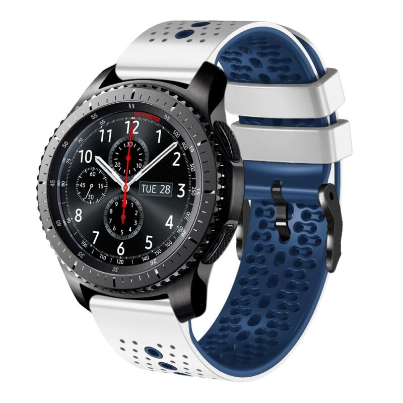 For Samsung Gear S3 Frontier 22mm Perforated Two-Color Silicone Watch Band(White+Blue)