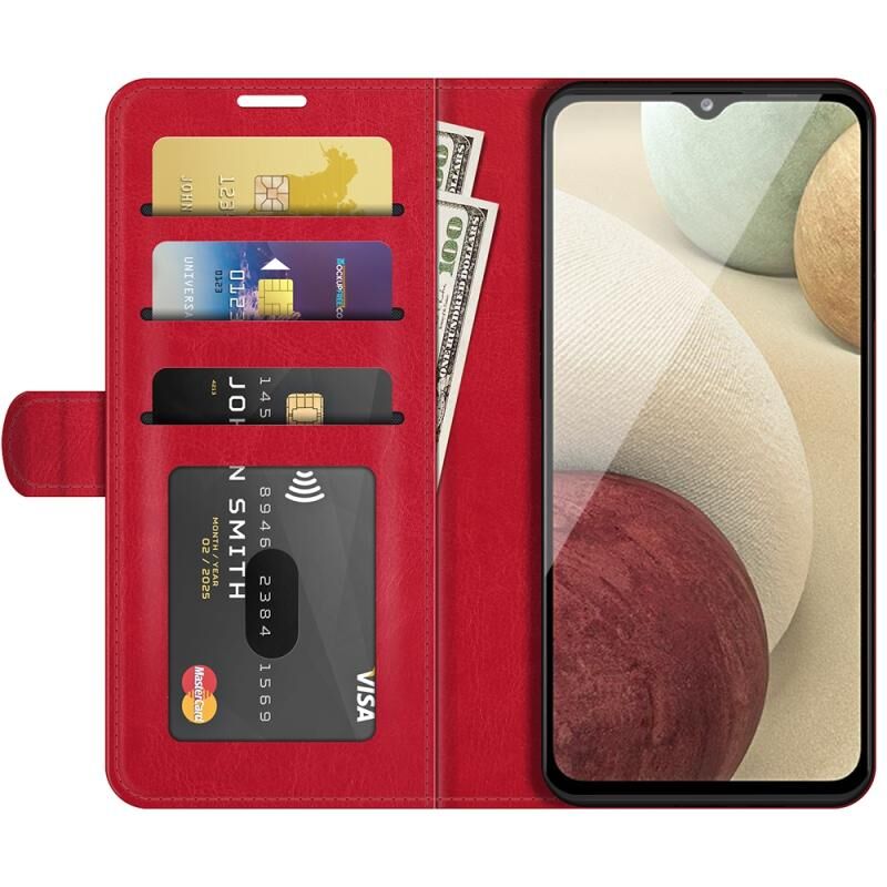 Θήκη προστασίας Samsung Galaxy A22 4G R64 με υφή, μονής οριζόντιας αναδίπλωσης, με βάση στήριξης & θήκες καρτών & πορτοφόλι & κορνίζα φωτογραφιών (Κόκκινο)