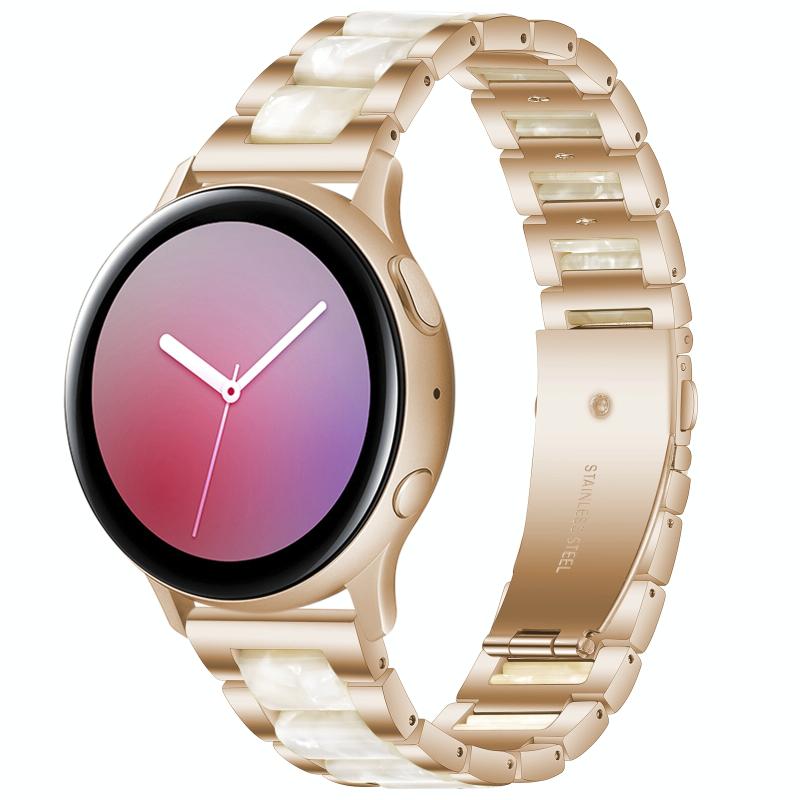 For Samsung Smart Watch 20mm Three-beads Steel + Resin Watch Band(Rose Gold White)