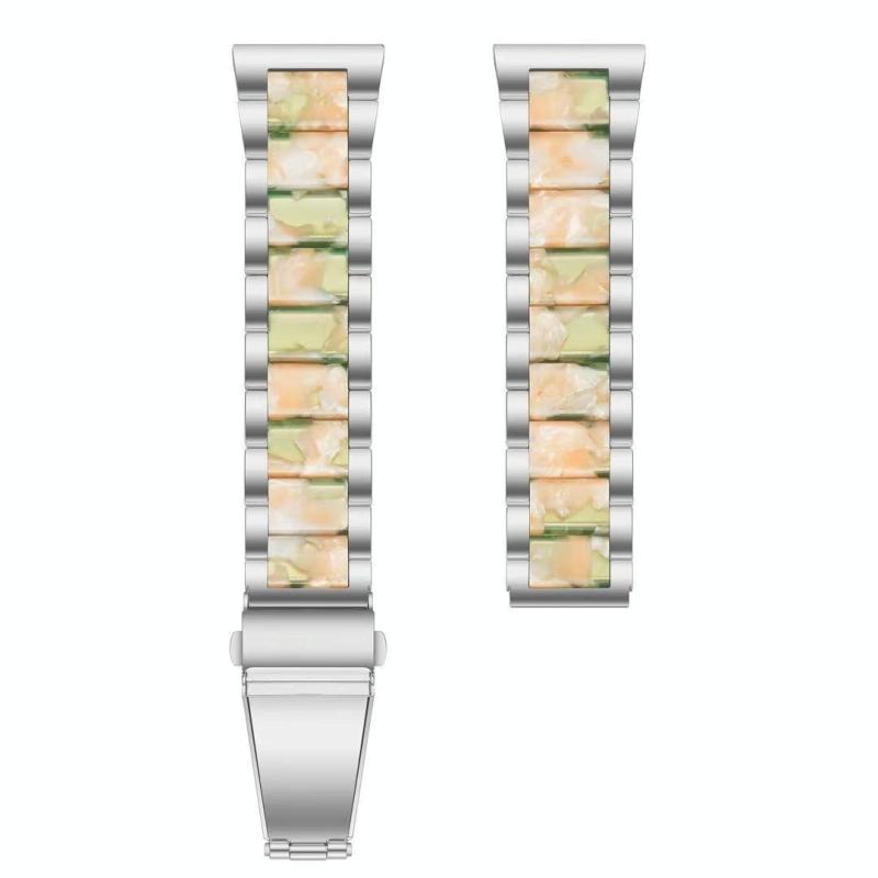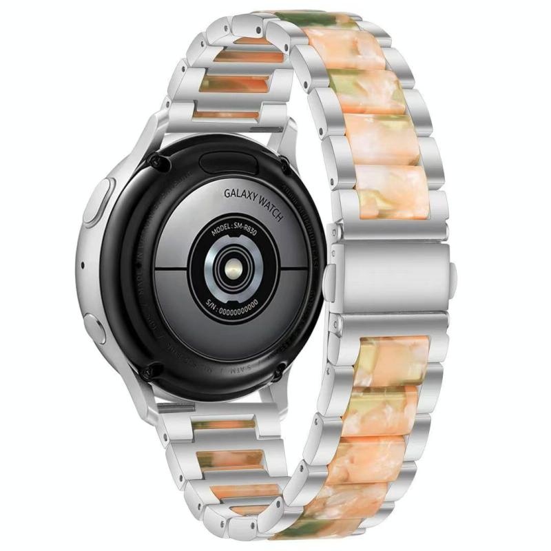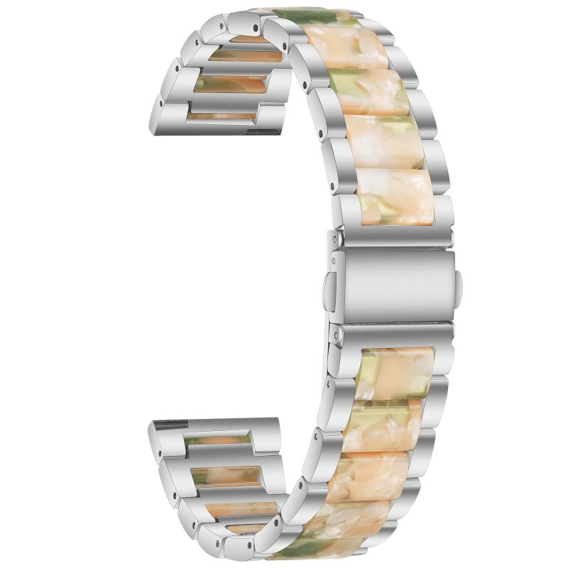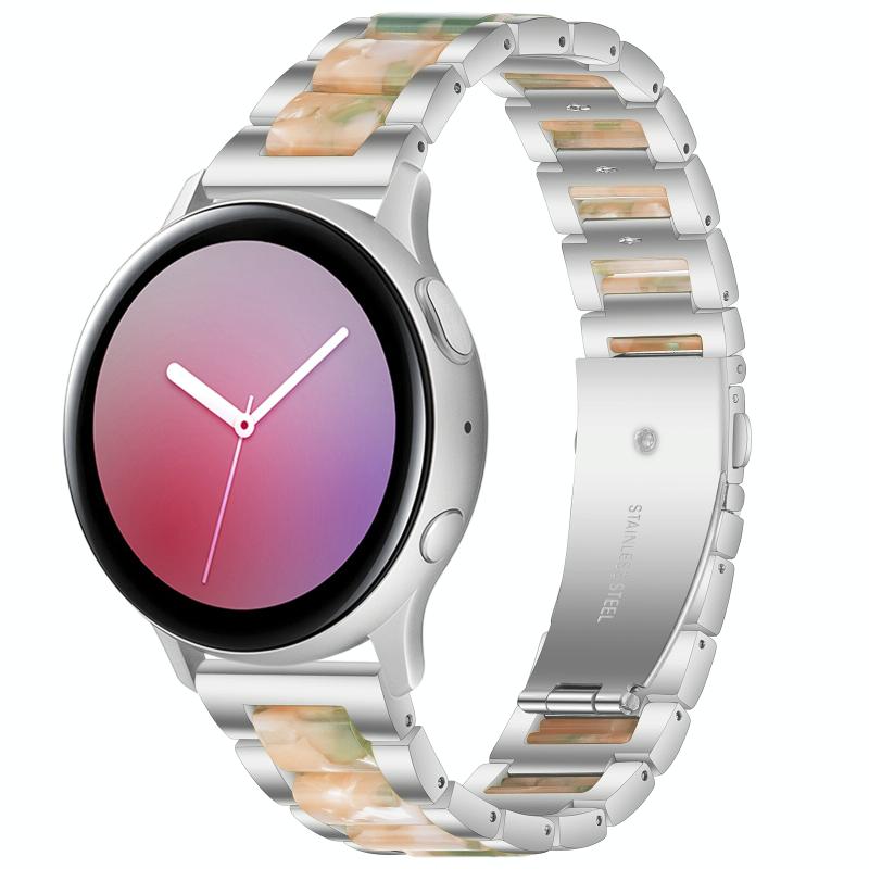 For Samsung Smart Watch 20mm Three-beads Steel + Resin Watch Band(Silver Pink Green)