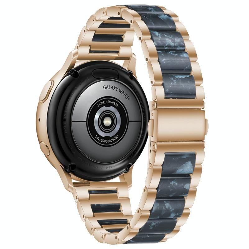 For Samsung Smart Watch 22mm Three-beads Steel + Resin Watch Band(Rose Gold Blue)