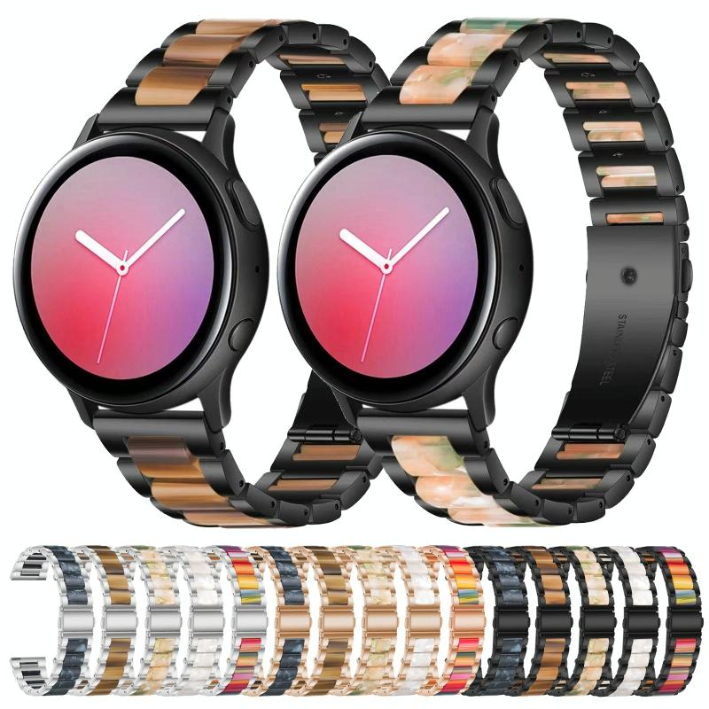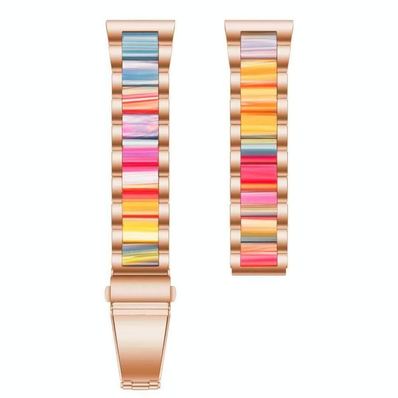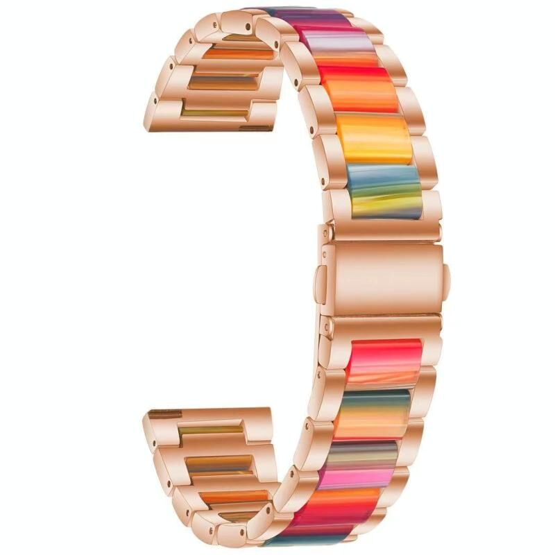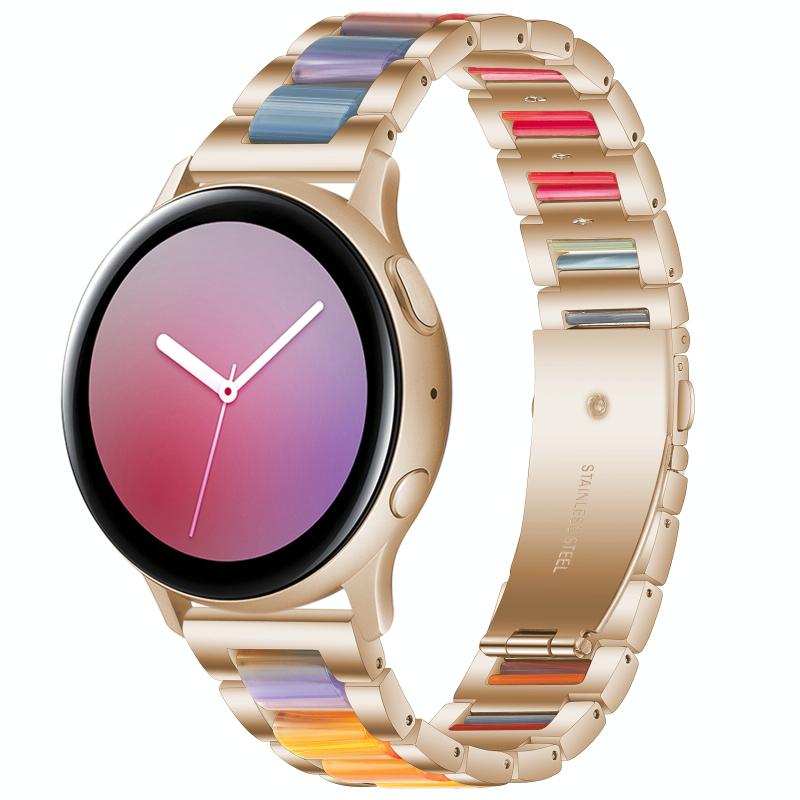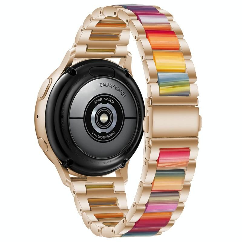 For Samsung Smart Watch 22mm Three-beads Steel + Resin Watch Band(Rose Gold Rainbow)