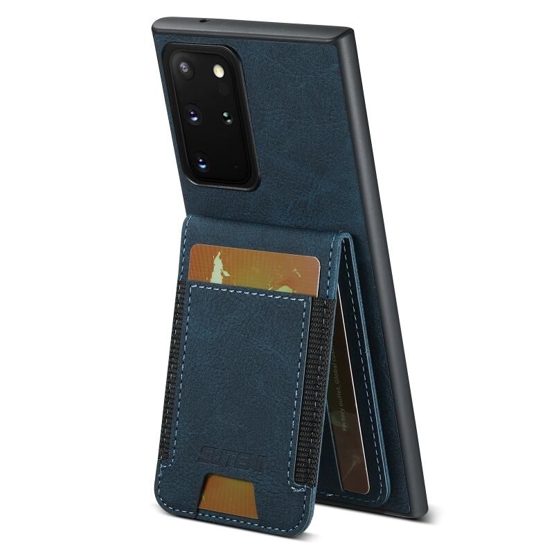 Θήκη κινητού τηλεφώνου Suteni H03 από δέρμα Lychee για Samsung Galaxy Note20 5G, με βάση στήριξης και θήκη καρτών (Μπλε) (Suteni)