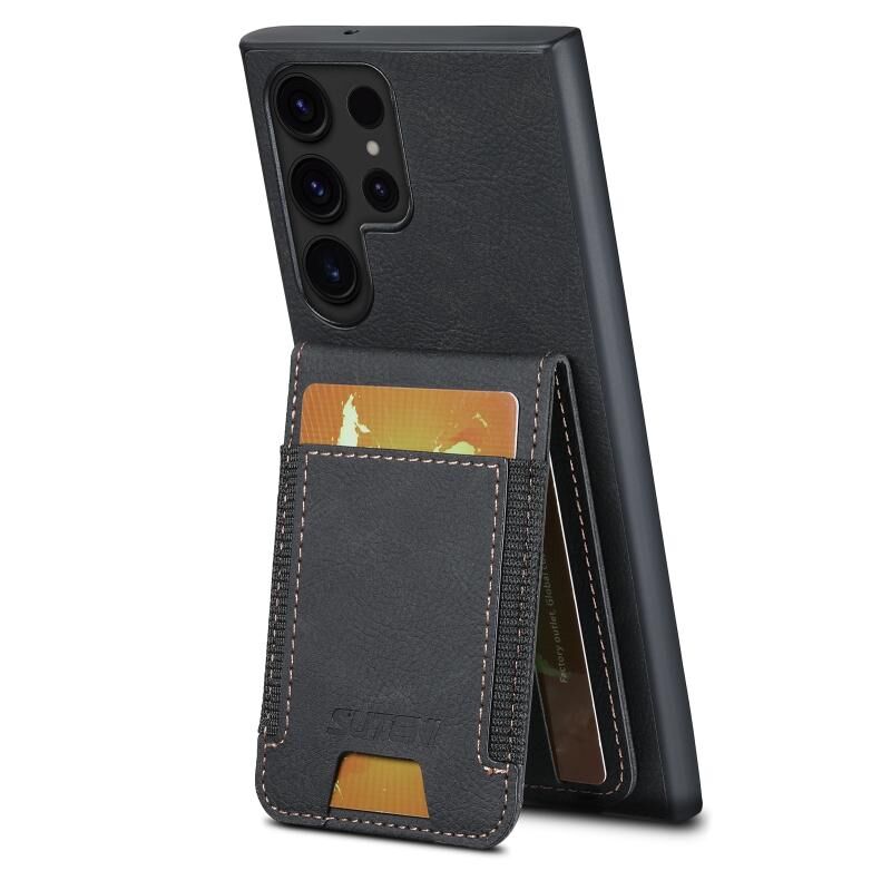 Θήκη κινητού τηλεφώνου για Samsung Galaxy S24 Ultra 5G Suteni H03 από δέρμα Lychee με θήκη καρτών και βάση στήριξης (Μαύρο) (Suteni)