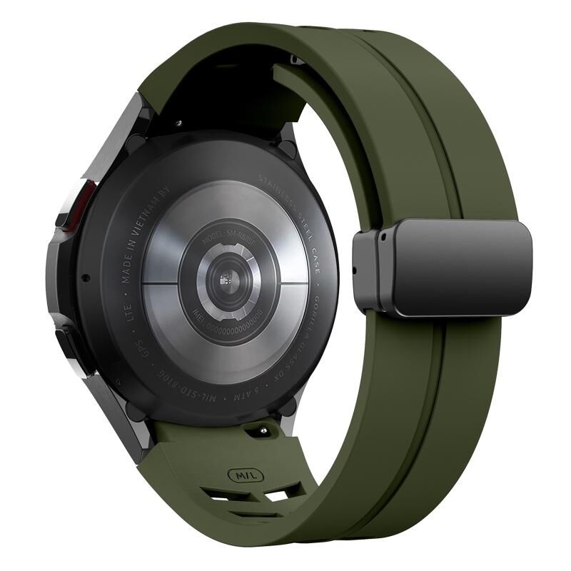 Για το Sansung Galaxy Watch 5 Pro 45mm Richard μαγνητική πτυσσόμενη μαύρη ζώνη σιλικόνης με αγκράφα (πράσινο στρατού)