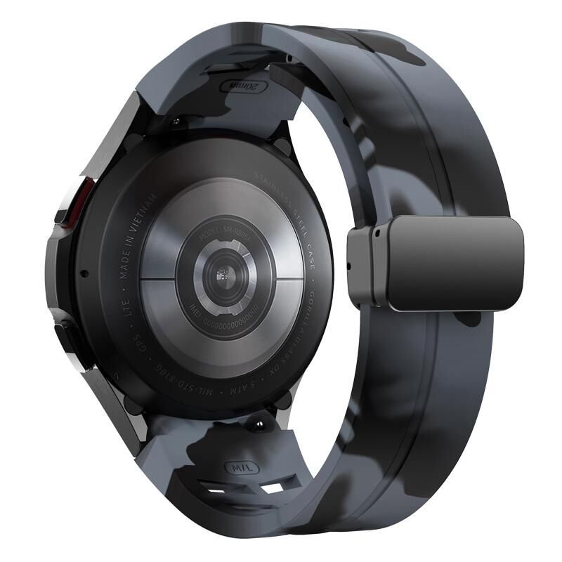 Για το Sansung Galaxy Watch 5 Pro 45mm Richard Μαγνητική πτυσσόμενη μαύρη ζώνη ρολογιού σιλικόνης με αγκράφα (μαύρο γκρι καμουφλάζ)