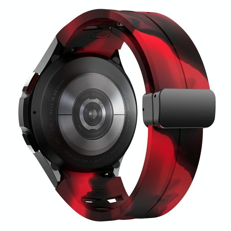Για το Sansung Galaxy Watch 5 Pro 45mm Richard Μαγνητική πτυσσόμενη μαύρη ζώνη ρολογιού σιλικόνης με αγκράφα (μαύρο κόκκινο καμουφλάζ)