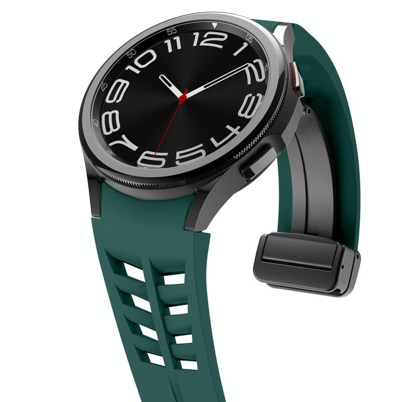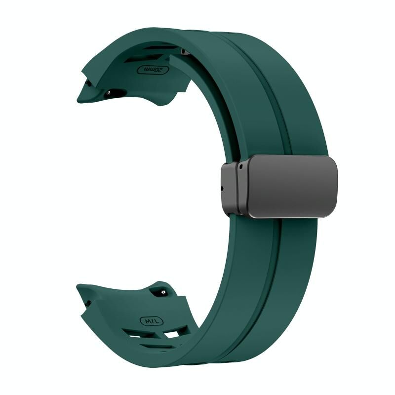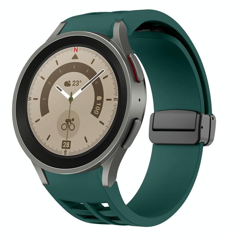 Για Sansung Galaxy Watch 5 Pro 45mm Richard μαγνητική πτυσσόμενη μαύρη ζώνη ρολογιού σιλικόνης με αγκράφα (σκούρο πράσινο)