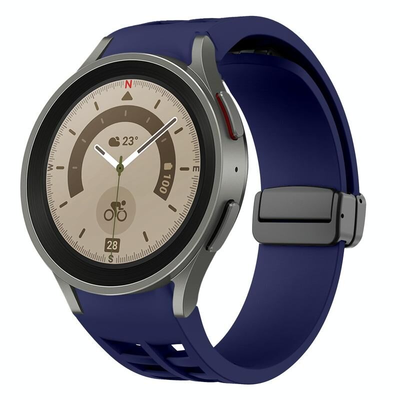 Για το Sansung Galaxy Watch 5 Pro 45mm Richard μαγνητική πτυσσόμενη μαύρη ζώνη σιλικόνης με αγκράφα (Μπλε μεσάνυχτα)