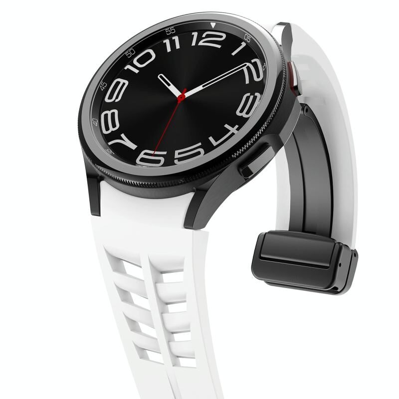 Για το Sansung Galaxy Watch 5 Pro 45mm Richard μαγνητική πτυσσόμενη μαύρη ζώνη ρολογιού σιλικόνης με αγκράφα (λευκό)