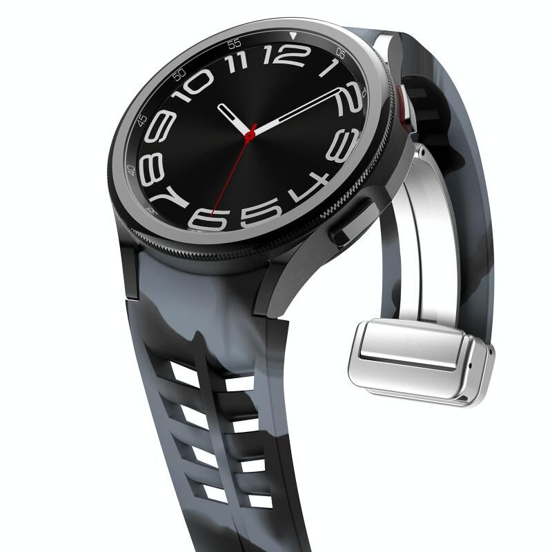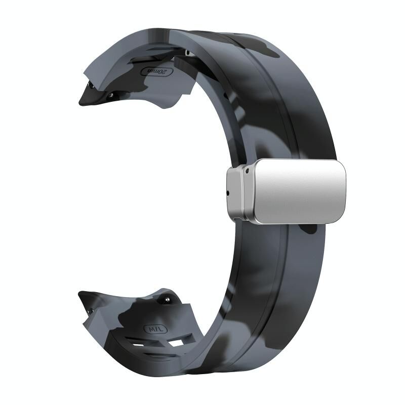 Για Sansung Galaxy Watch 5 Pro 45mm Richard μαγνητική πτυσσόμενη ασημένια πόρπη σιλικόνης ζώνη ρολογιού (μαύρο γκρι καμουφλάζ)