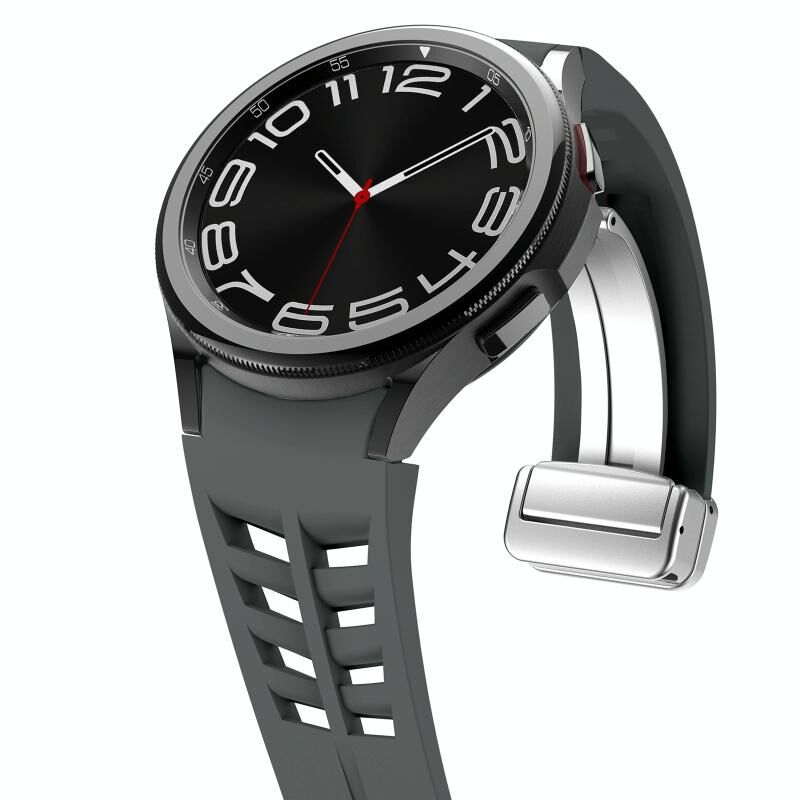 Για το Sansung Galaxy Watch 5 Pro 45mm Richard Magnetic Folding Silver Buckle Silicone Watch Band (Space Gray)