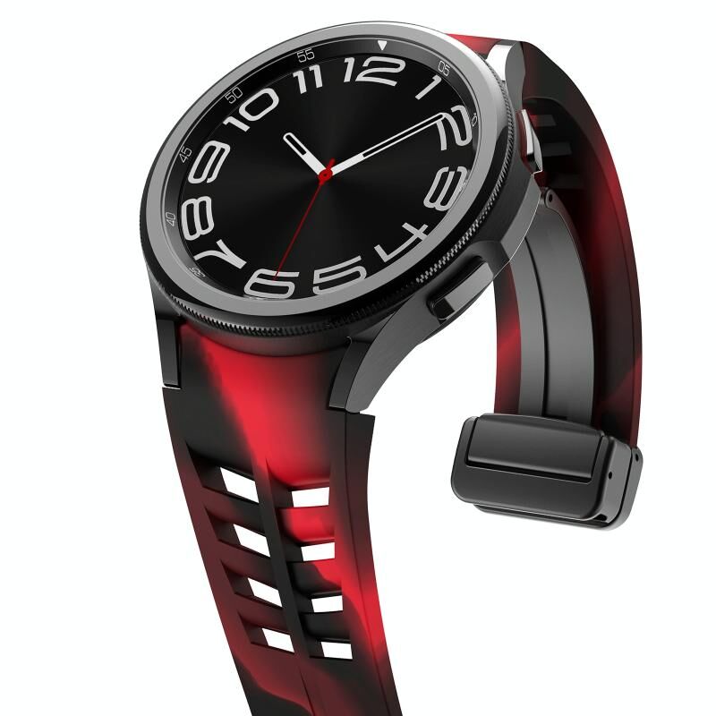 Για το Sansung Galaxy Watch 5 Pro Golf Edition Richard Μαγνητική πτυσσόμενη μαύρη ζώνη σιλικόνης με πόρπη (μαύρο κόκκινο καμουφλάζ)