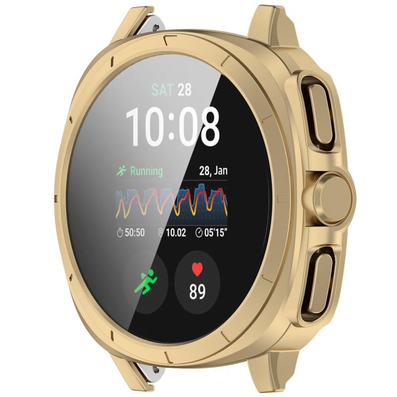 For Sansung Galaxy Watch 7 44mm PC + Tempered Film Integrated Watch Protective Case(Champagne Gold)