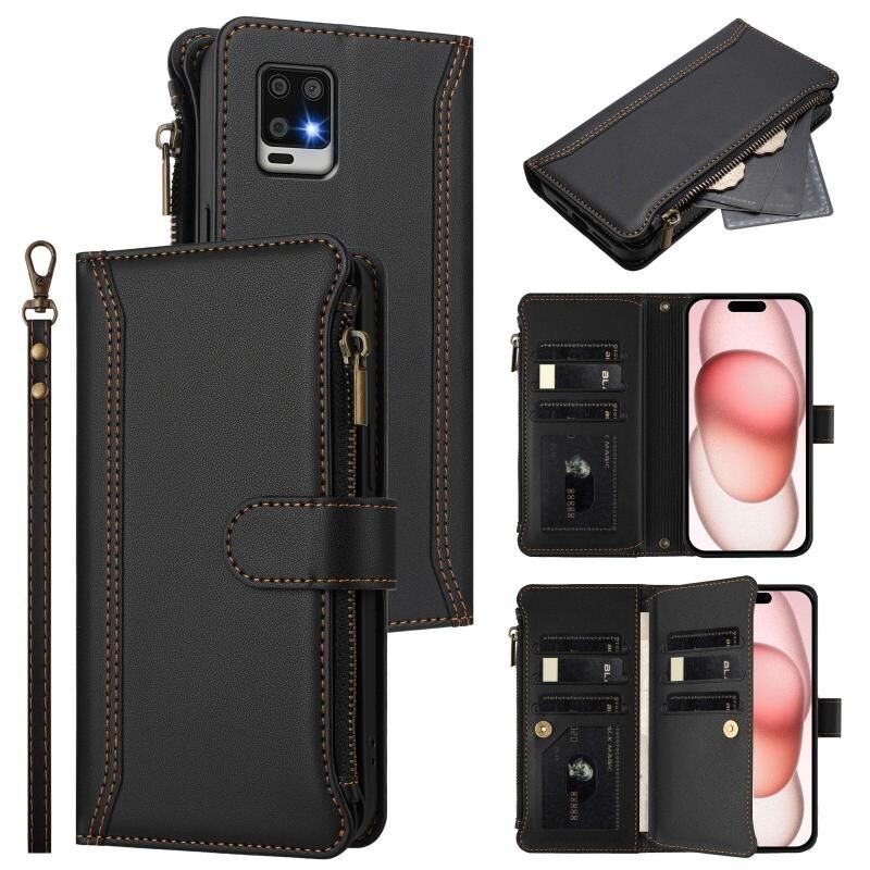 For Sharp Aquos Air / zero6 Magnetic Closure 9 Card Slots Zipper Leather Case with Hand Strap(Black)