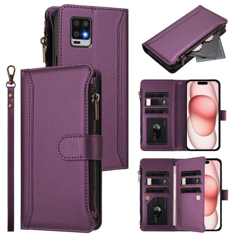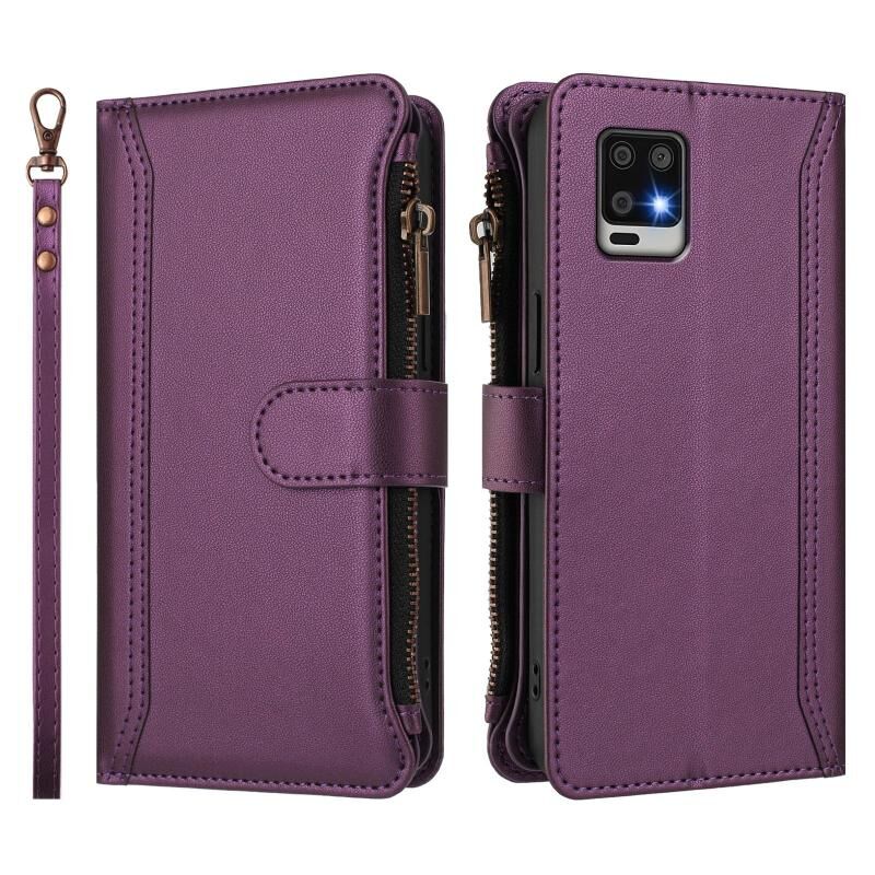 For Sharp Aquos Air / zero6 Magnetic Closure 9 Card Slots Zipper Leather Case with Hand Strap(Purple)