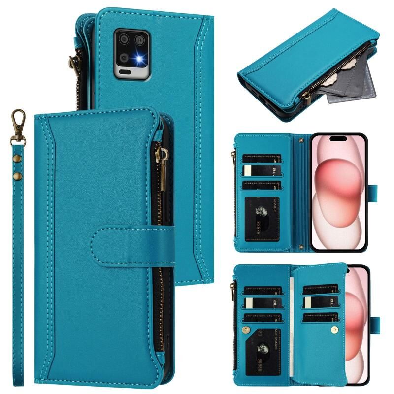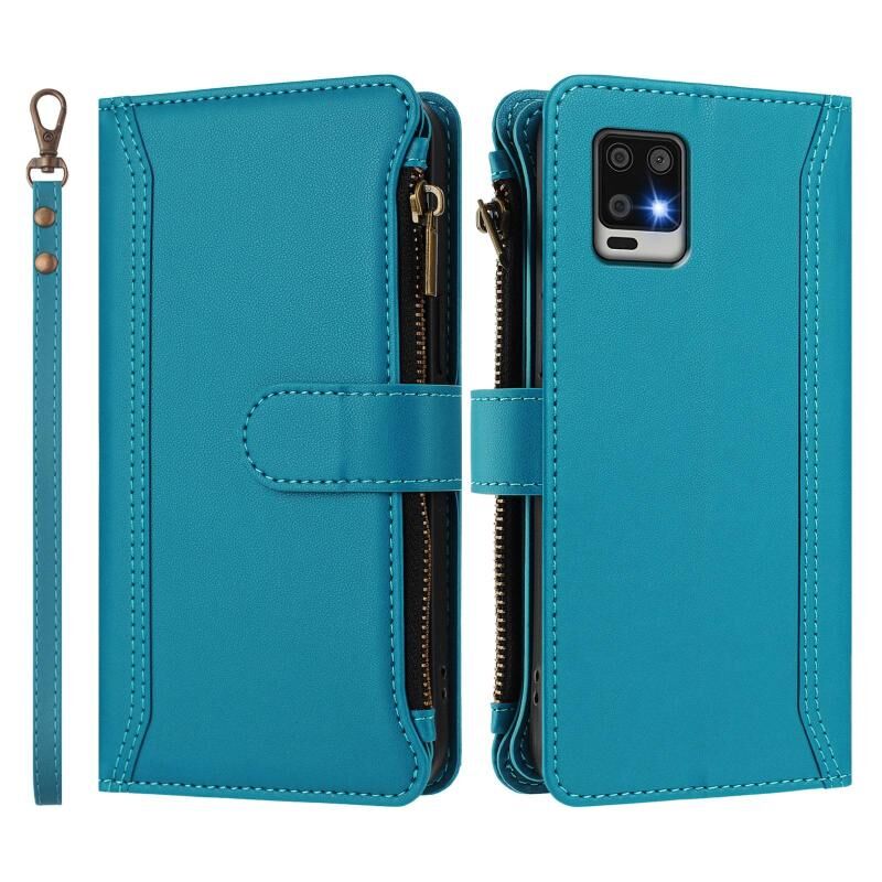 For Sharp Aquos Air / zero6 Magnetic Closure 9 Card Slots Zipper Leather Case with Hand Strap(Turquoise)