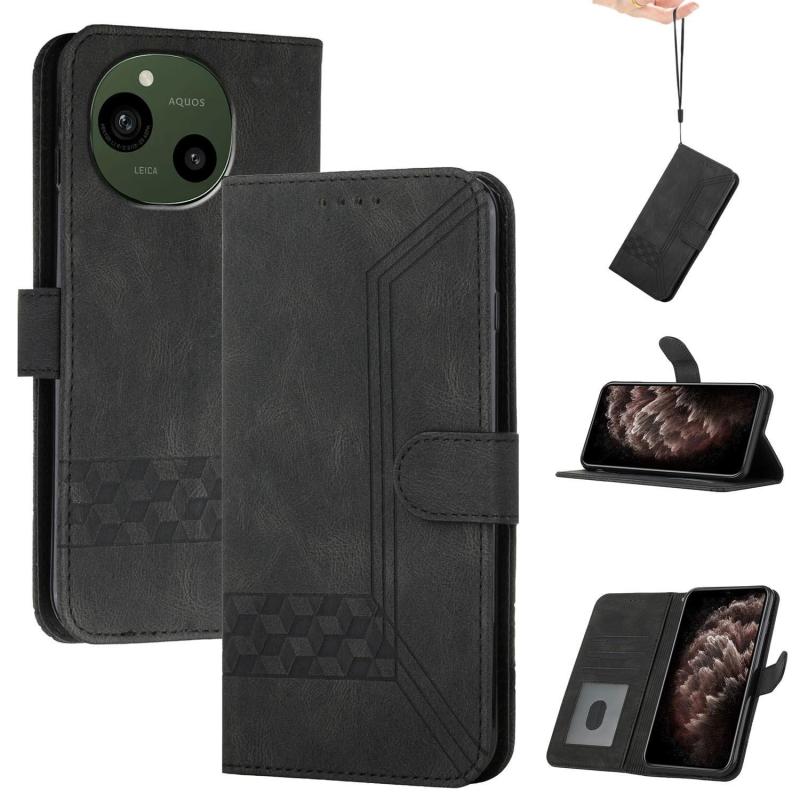 For Sharp Aquos R10 Cubic Skin Feel Flip Leather Phone Case(Black)