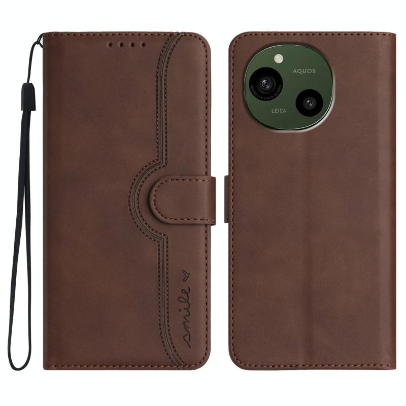 For Sharp Aquos R10 Heart Pattern Skin Feel Leather Phone Case(Brown)