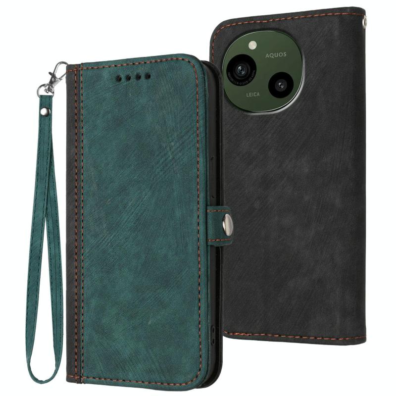 For Sharp Aquos R10 Side Buckle Double Fold Hand Strap Leather Phone Case(Dark Green)