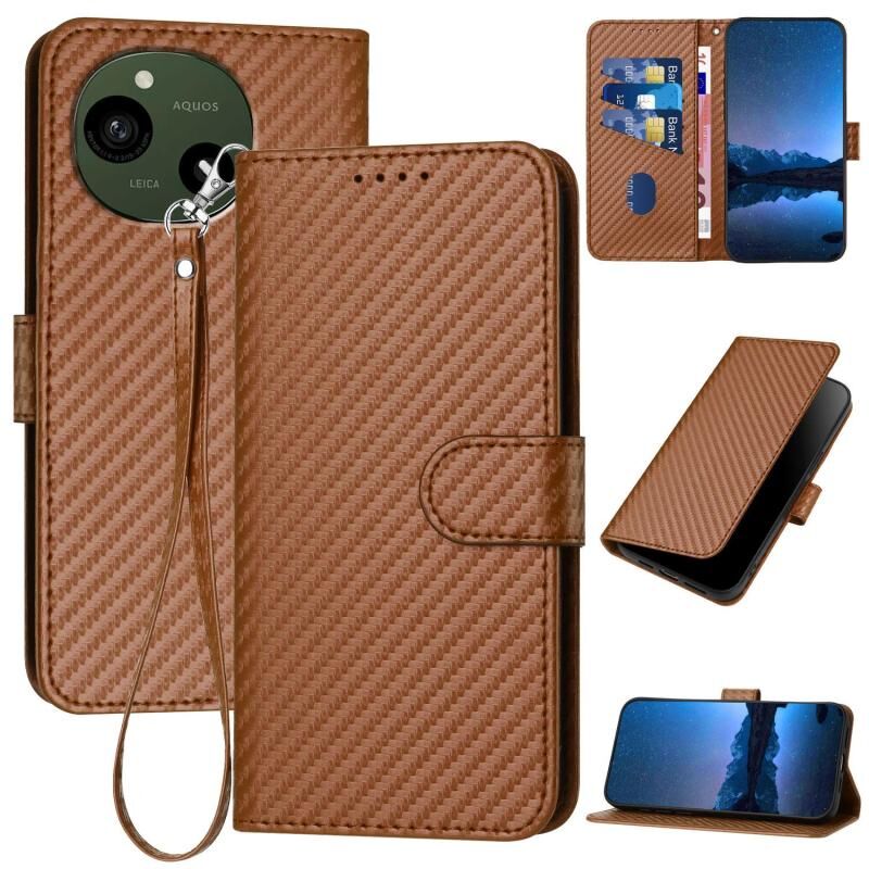 For Sharp Aquos R10 YX0070 Carbon Fiber Buckle Leather Phone Case with Lanyard(Coffee)