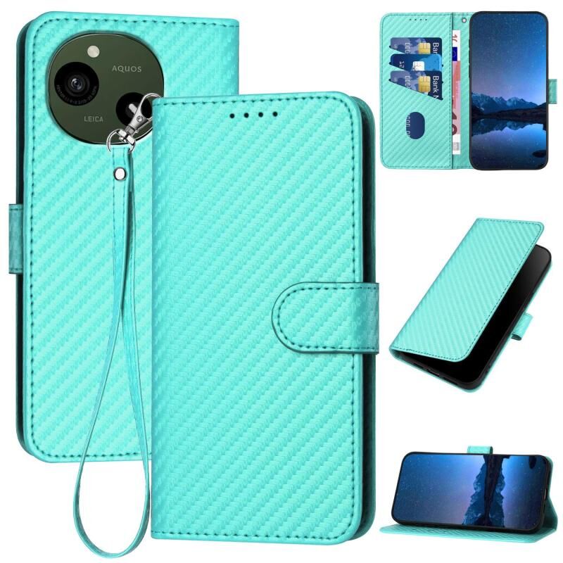 For Sharp Aquos R10 YX0070 Carbon Fiber Buckle Leather Phone Case with Lanyard(Light Blue)