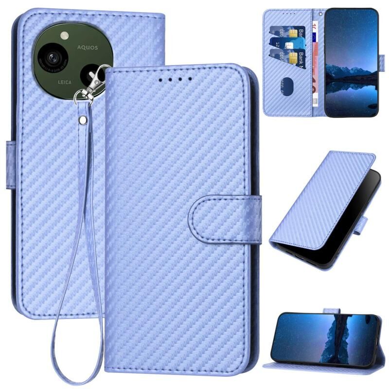 For Sharp Aquos R10 YX0070 Carbon Fiber Buckle Leather Phone Case with Lanyard(Light Purple)