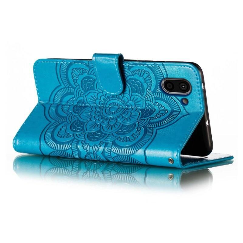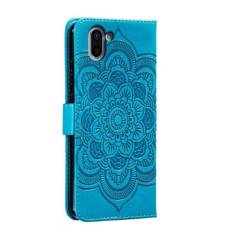 Για Sharp Aquos R2 Sun Mandala ανάγλυφο μοτίβο τηλέφωνο δερμάτινη θήκη (μπλε)