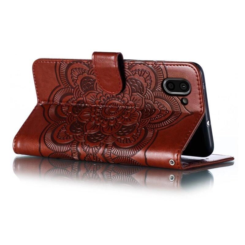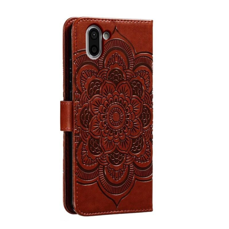 Για Sharp Aquos R2 Sun Mandala ανάγλυφο μοτίβο τηλέφωνο δερμάτινη θήκη (καφέ)