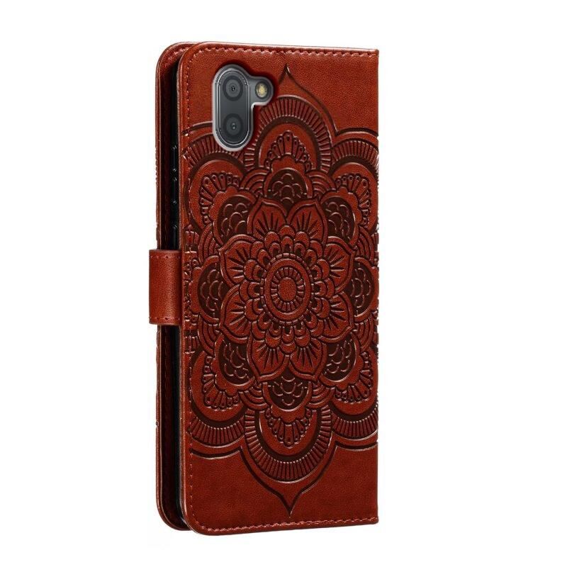 Για Sharp Aquos R3 Sun Mandala ανάγλυφο μοτίβο τηλέφωνο δερμάτινη θήκη (καφέ)