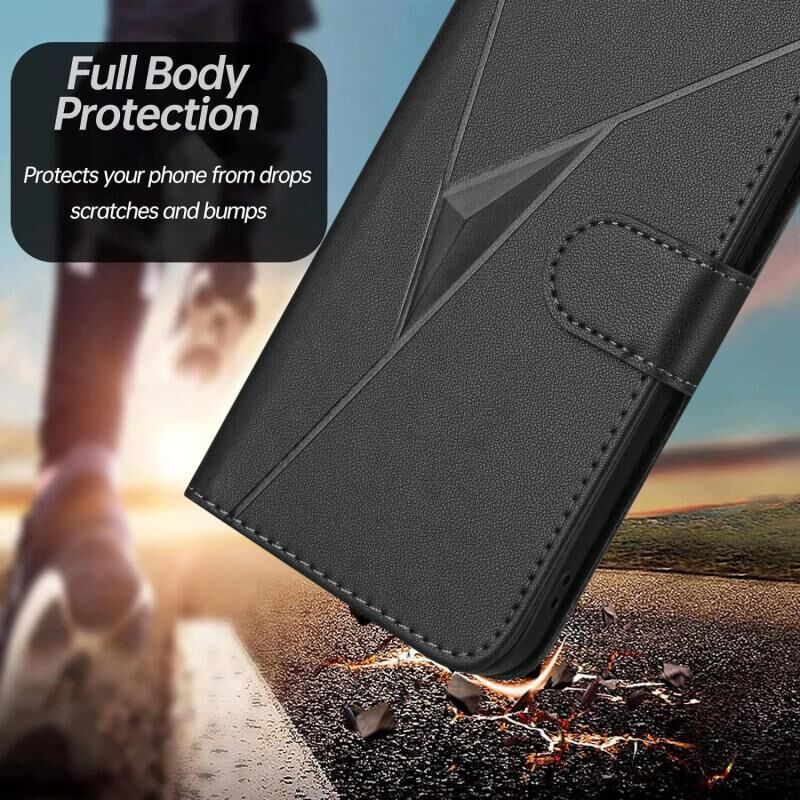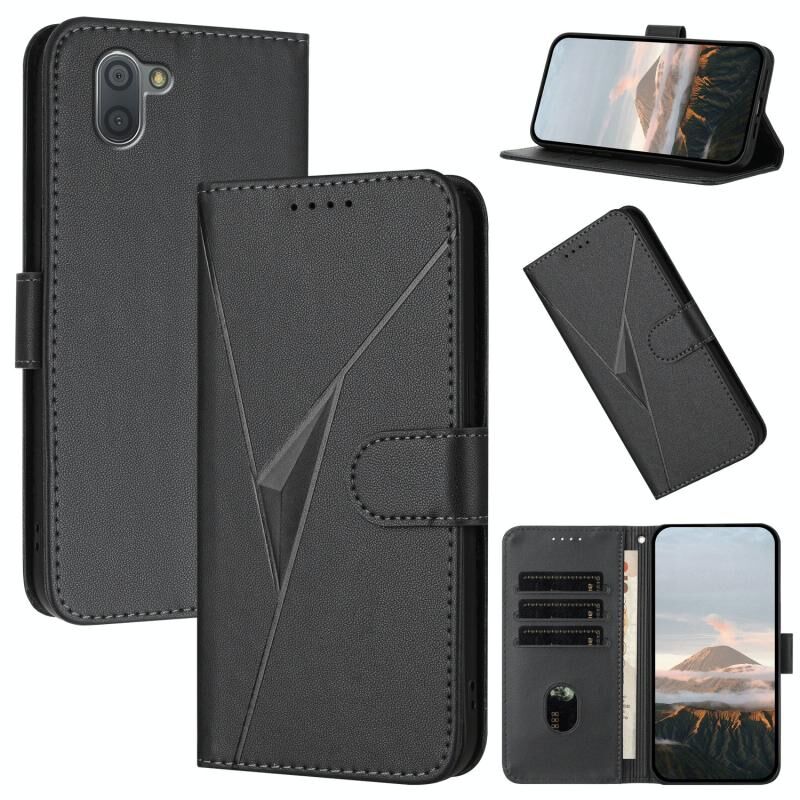 Για Sharp Aquos R3 Τρίγωνο μοτίβο πόρπη κούμπωμα δερμάτινη θήκη τηλεφώνου (μαύρο)
