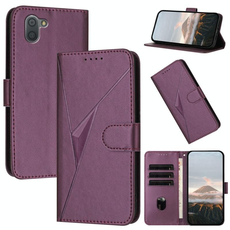 Για Sharp Aquos R3 Τρίγωνο μοτίβο αγκράφα κούμπωμα δερμάτινη θήκη τηλεφώνου (Dark Purple)