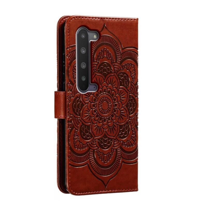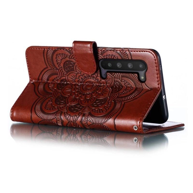 Για Sharp Aquos R5G Sun Mandala ανάγλυφο μοτίβο τηλέφωνο δερμάτινη θήκη (καφέ)