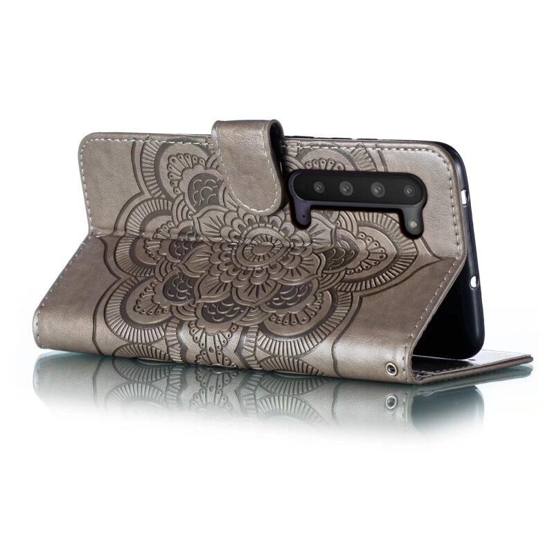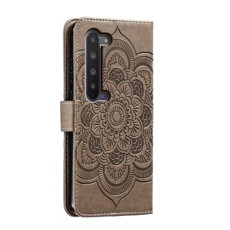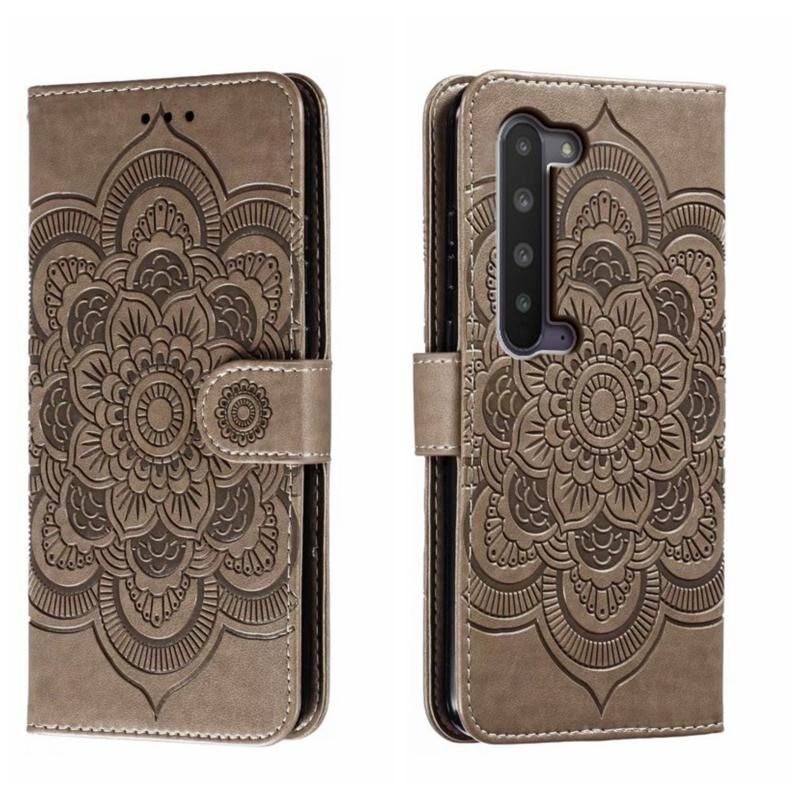 Για Sharp Aquos R5G Sun Mandala ανάγλυφο μοτίβο τηλέφωνο δερμάτινη θήκη (γκρι)