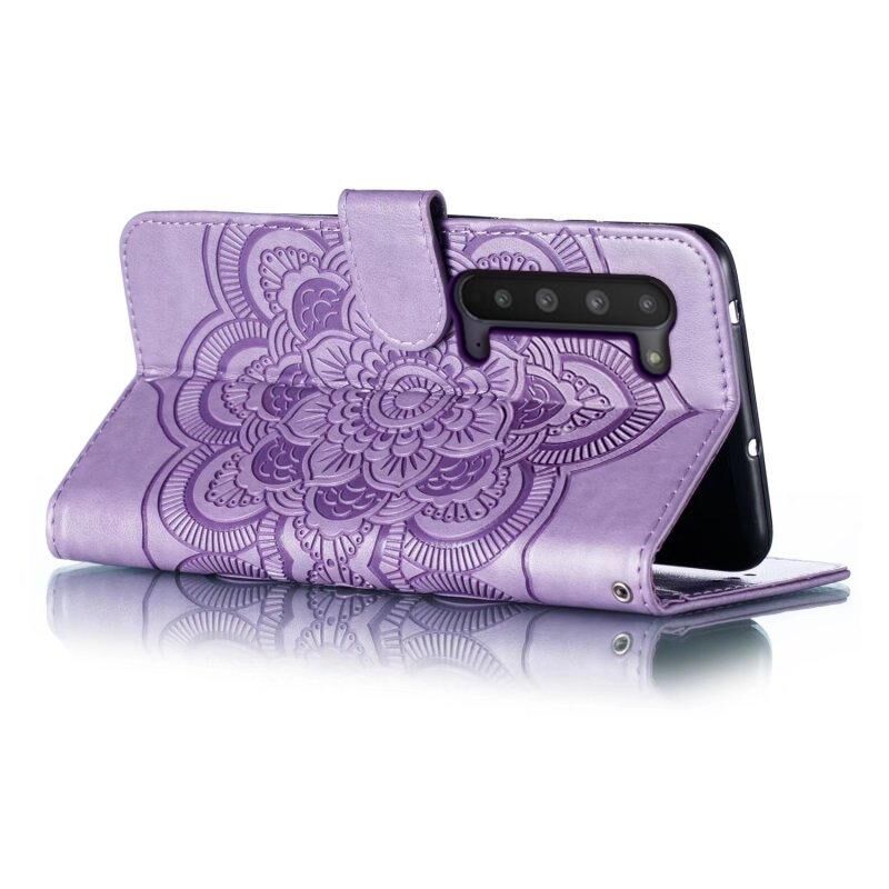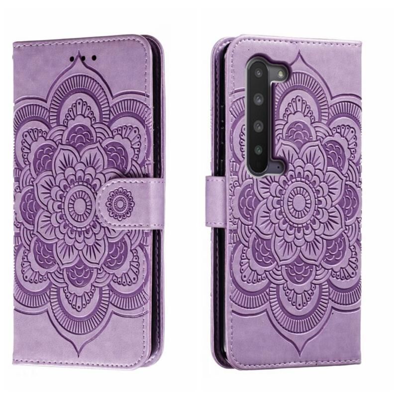 Για Sharp Aquos R5G Sun Mandala ανάγλυφο μοτίβο τηλέφωνο δερμάτινη θήκη (μωβ)