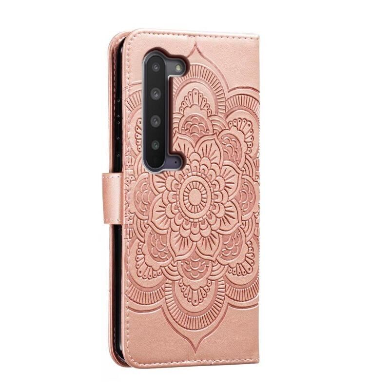 Για Sharp Aquos R5G Sun Mandala ανάγλυφο μοτίβο τηλέφωνο δερμάτινη θήκη (Rose Gold)