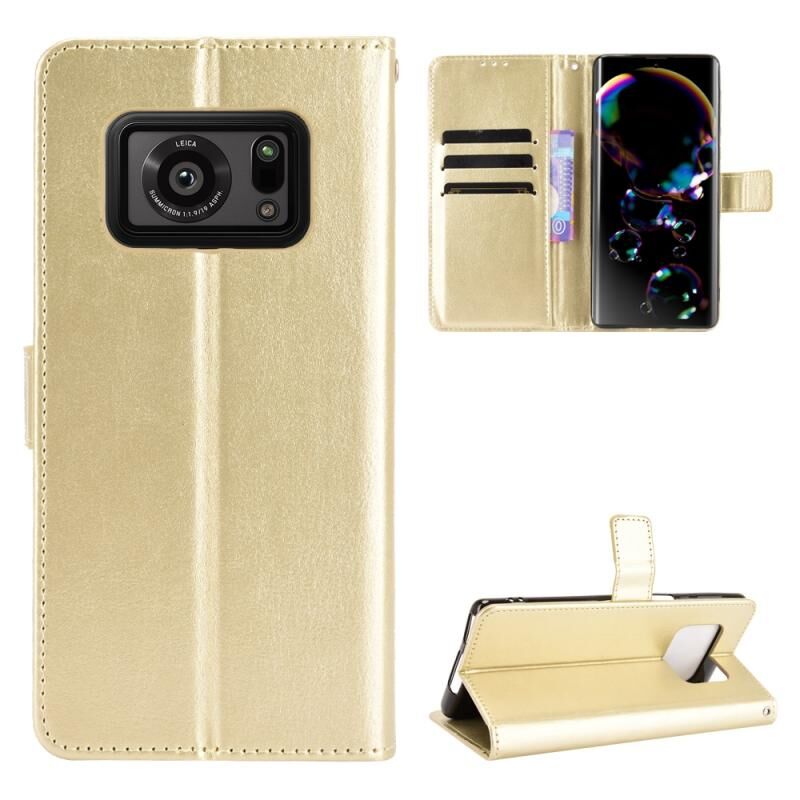 Για το Sharp Aquos R6 Crazy Horse Texture Horizontal Flip Leather Case με θήκη για κάρτες & υποδοχές & κορδόνι (χρυσό)