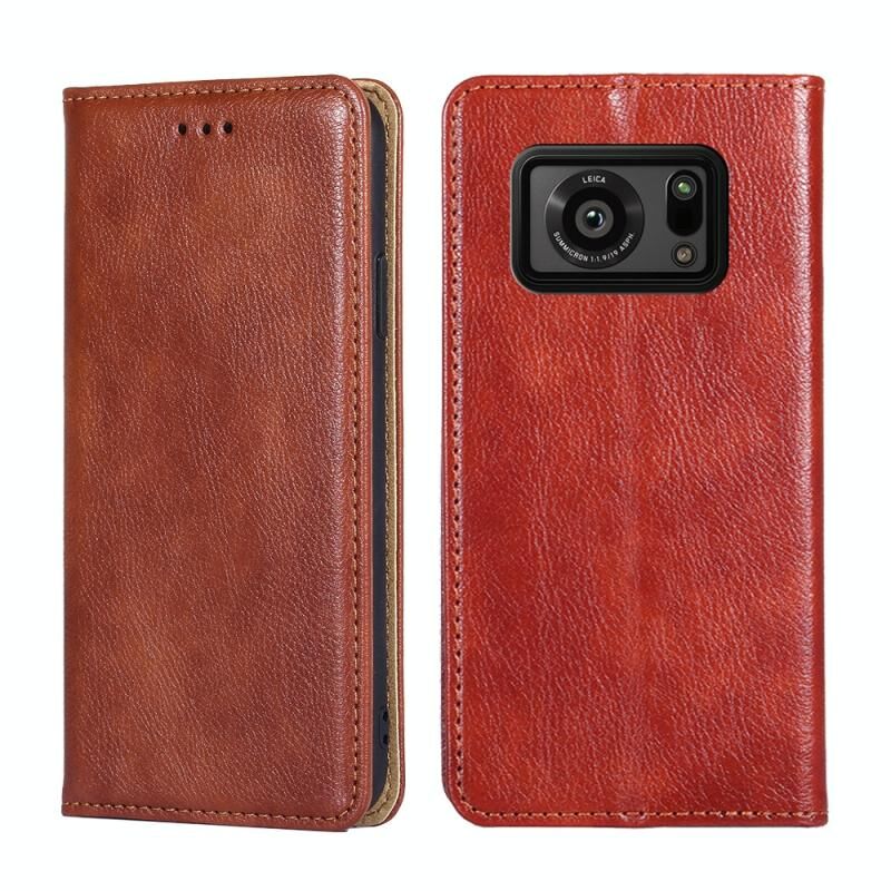 Για το Sharp Aquos R6 Gloss Oil Solid Color Μαγνητική δερμάτινη θήκη τηλεφώνου (καφέ)