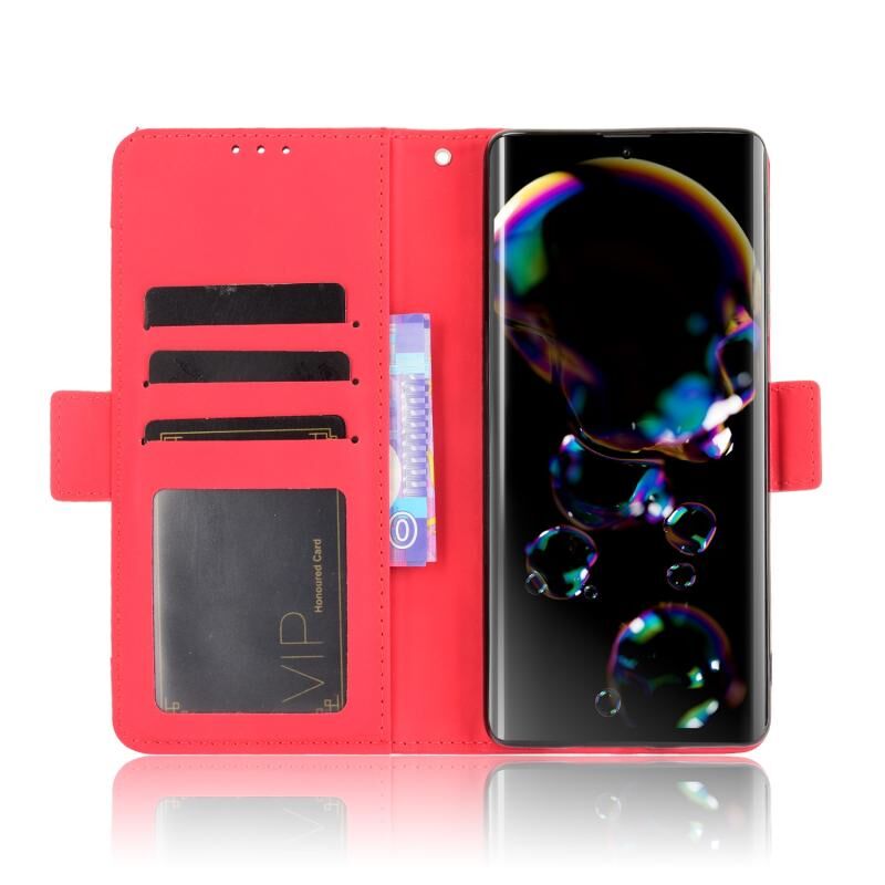 Για το Sharp Aquos R6 Skin Feel Calf Pattern Horizontal Flip Leather Case with Holder & Card Slots & Photo Frame(Red)