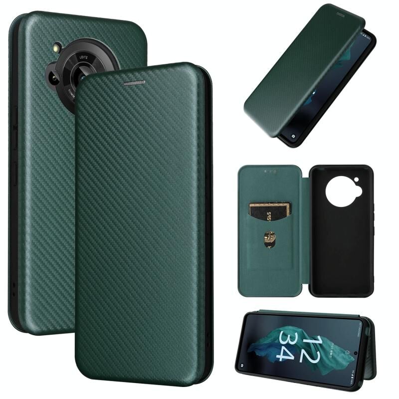 Για το Sharp Aquos R7 Carbon Fiber Texture Leather Phone Case (πράσινο)