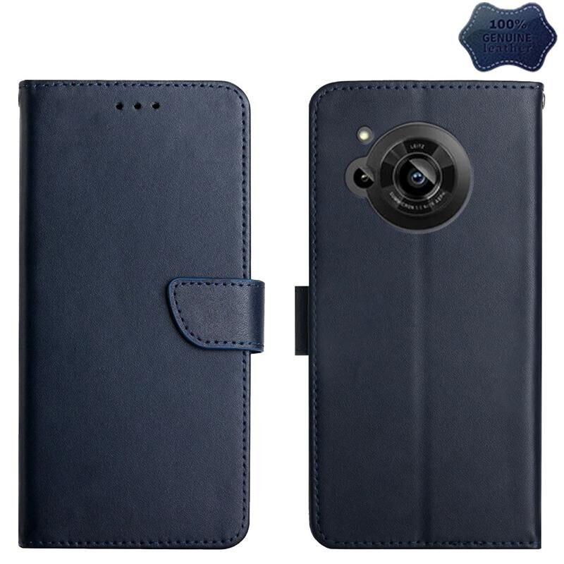 Θήκη τηλεφώνου οριζόντιας αναδίπλωσης από γνήσιο δέρμα για Sharp Aquos R7, ανθεκτική στα δακτυλικά αποτυπώματα (Μαύρο)