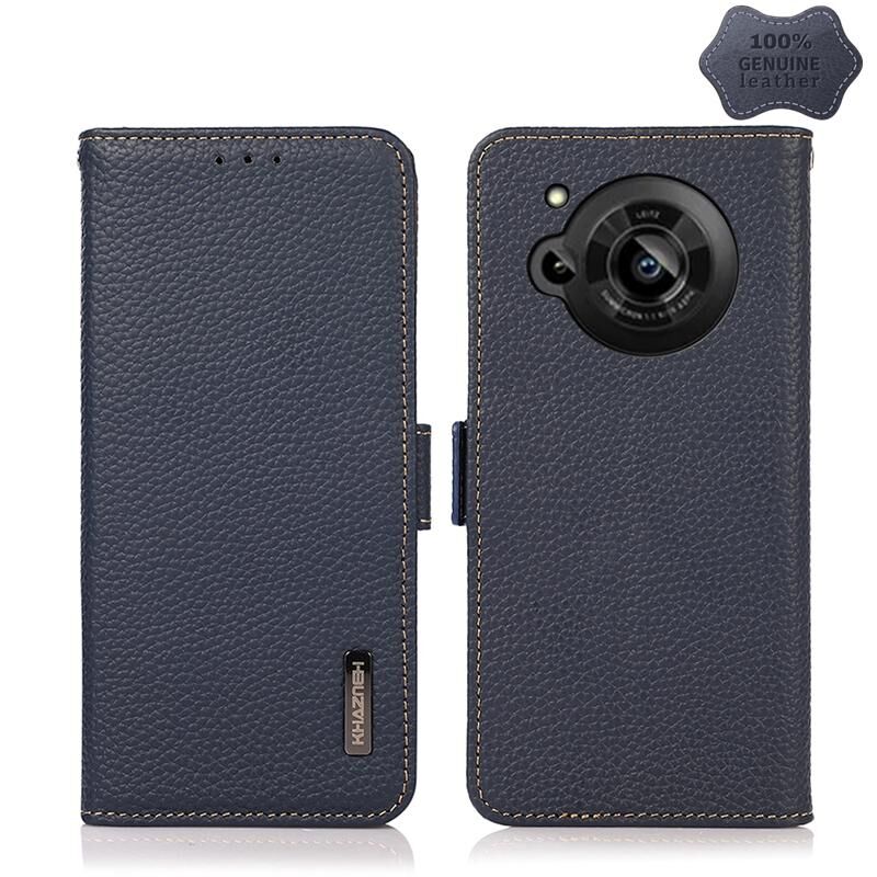 Θήκη τηλεφώνου με μαγνητική πλευρά και γνήσιο δέρμα Litchi RFID για Sharp Aquos R7 KHAZNEH (Μπλε)