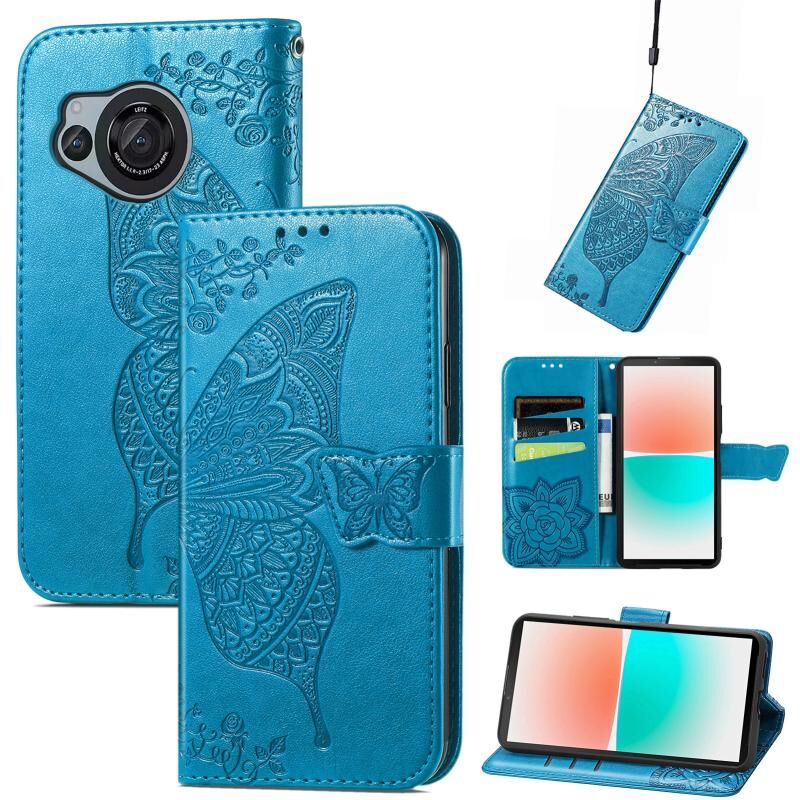 Θήκη τηλεφώνου από δέρμα με ανάγλυφο σχέδιο λουλουδιών για Sharp Aquos R8 Butterfly Love (Χρυσό ροζ)