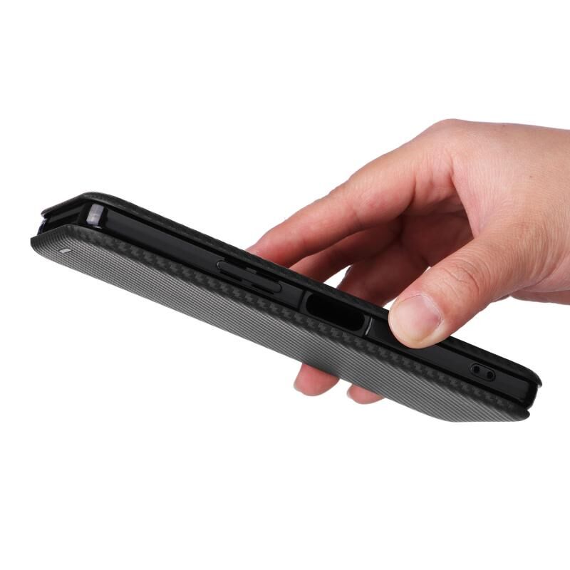 Για Sharp Aquos R8 Carbon Fiber Texture Flip δέρμα τηλέφωνο υπόθεση (Μαύρο)