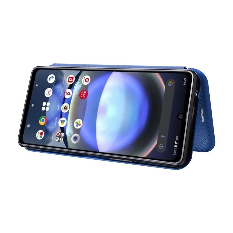 Για Sharp Aquos R8 Carbon Fiber Texture Flip δέρμα τηλέφωνο υπόθεση (μπλε)