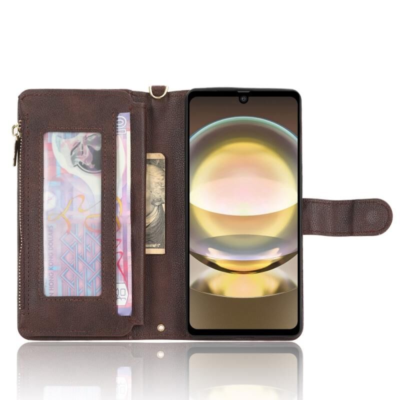 Για Sharp Aquos R8 Litchi Υφή φερμουάρ δερμάτινη θήκη τηλεφώνου (καφέ)