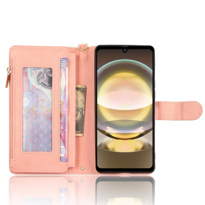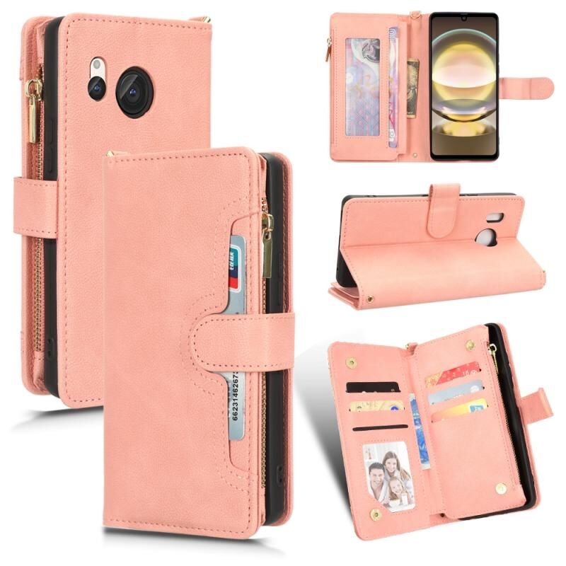 Για Sharp Aquos R8 Litchi Υφή φερμουάρ δερμάτινη θήκη τηλεφώνου (ροζ)