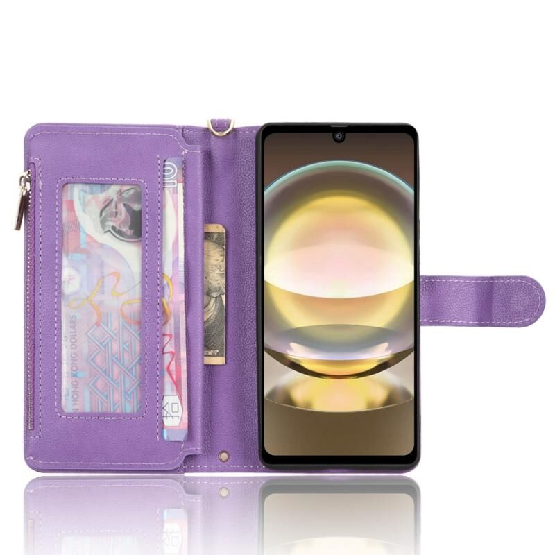 Για Sharp Aquos R8 Litchi Υφή φερμουάρ δερμάτινη θήκη τηλεφώνου (μωβ)