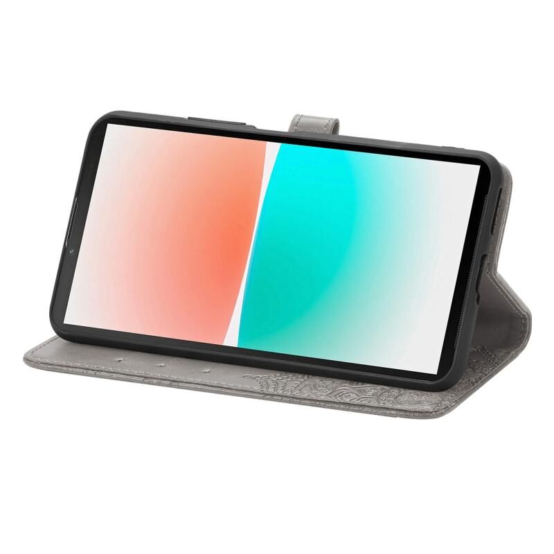Για Sharp Aquos R8 Mandala λουλούδι ανάγλυφο δέρμα υπόθεση τηλεφώνου (γκρι)